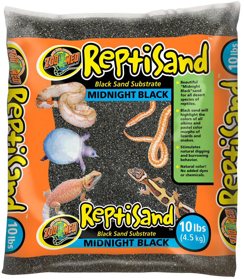 Beautiful "Midnight Black" sand for all types of desert reptiles. Black sand emphasizes the colors of all albino and pastel color changes of lizards and snakes. Stimulates natural digging behavior. Natural color! No added dyes or chemicals.